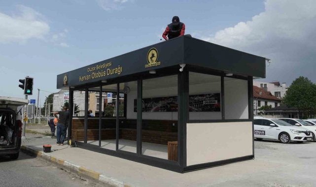 DÜZCE(İHA) – Düzce Belediyesi, estetik görünüm katılarak üretilen modern ve akıllı durakların altıncısını Kervan mevkisinde konumlandırdı.