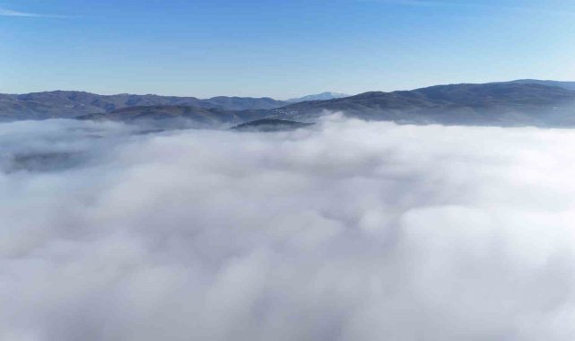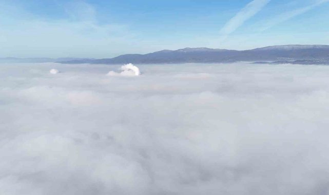 Düzce'nin üzerini kaplayan sis denizi havadan görüntülendi