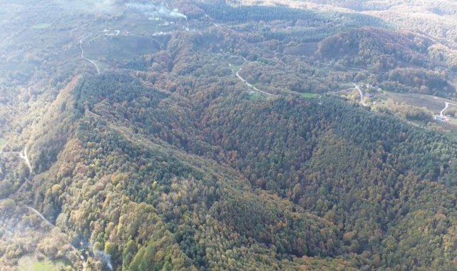 Doğal güzellikleri ve zengin bitki örtüsüyle dikkat çeken Düzce'de, sonbaharın son günlerinde renk cümbüşü yaşanıyor. Mevsim manzarası, havadan da görüntülendi.