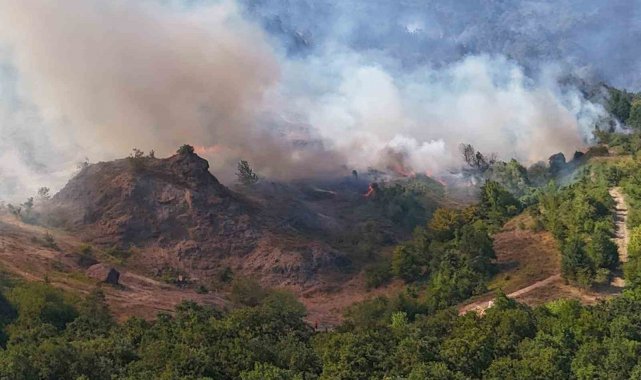 Düzce-Sakarya sınırındaki yangına havadan ve karadan müdahale sürüyor
