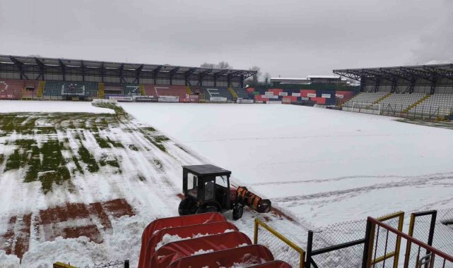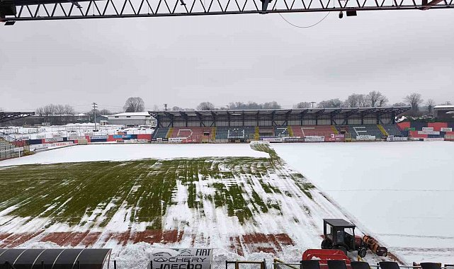 Yurdun büyük bir bölümünde etkili olan kar yağışı Düzce'de şehir stadını da kapladı. Düzce Gençlik ve Spor Müdürlüğüne bağlı ekipler 9 Şubat 2025 Pazar günü saat 14.00'da oynanacak olan Düzcespor ile 23 Elazığ FK maçı için Şıralık Şehir Stadyumu temizlenip maça hazır hale getiriliyor.