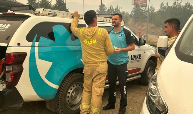 Düzce İl Sağlık Müdürlüğü'ne bağlı UMKE ekibi Karabük'teki orman yangınında destek için görevdeler.