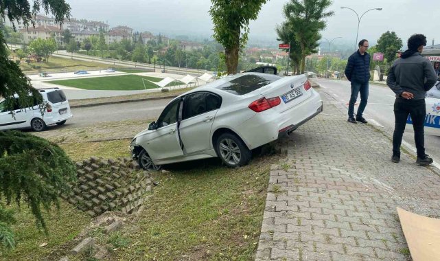 Düzce'de sürücüsünün direksiyon hakimiyetini kaybettiği otomobil aydınl...