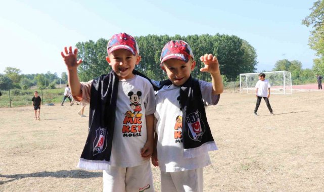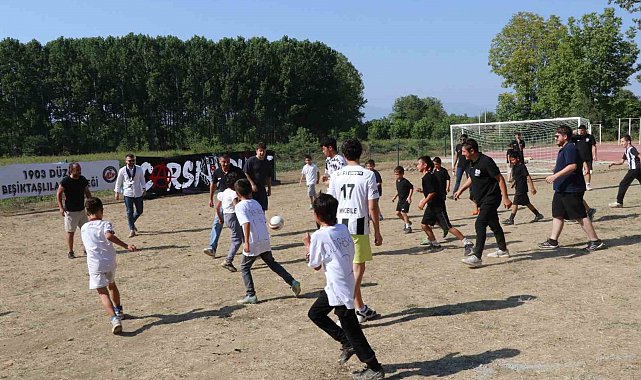 Köy çocukları ise Beşiktaşlılara sürpriz yaptı ve Beşiktaşlı futbolcuların isimlerini elleriyle penyelerine yazarak, futbol maçı yaptı.