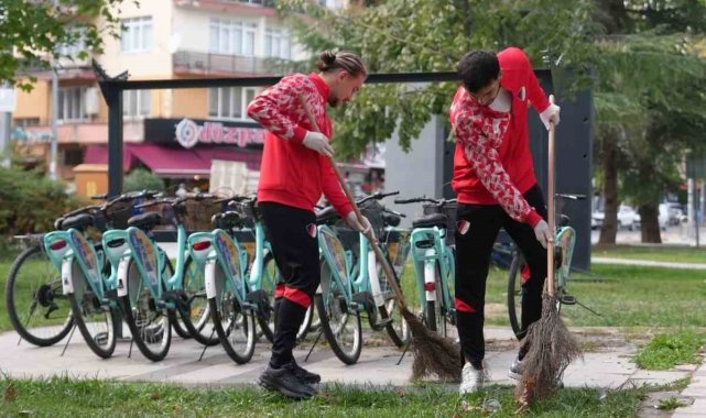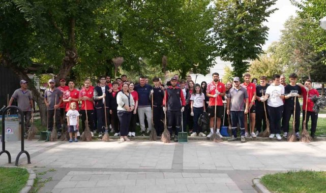 Düzcesporlu futbolcular ve öğrenciler parkı temizlediler