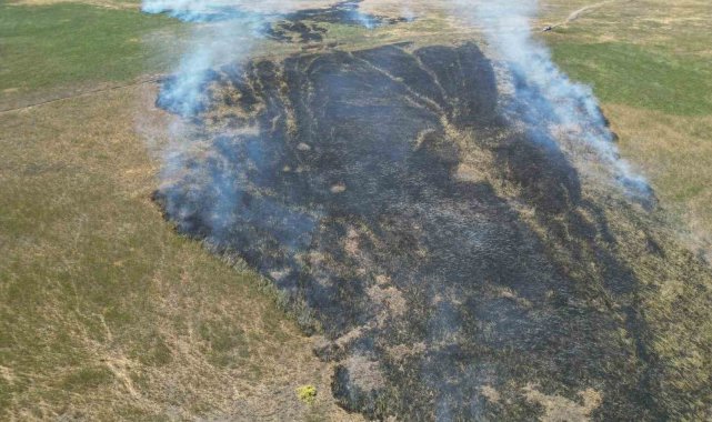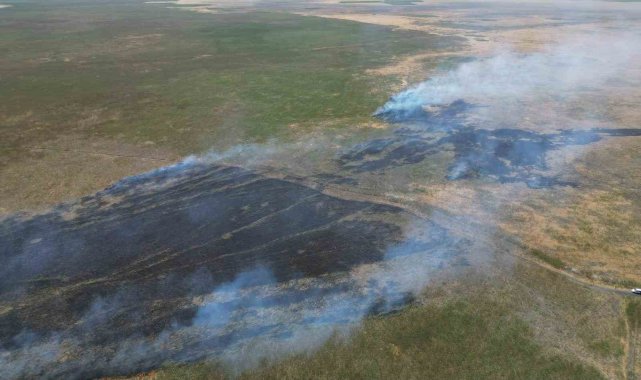 Afyonkarahisar'da bulunan Eber Gölü'nün çevresindeki otluk arazide çıkan yangına müdahale ediliyor.