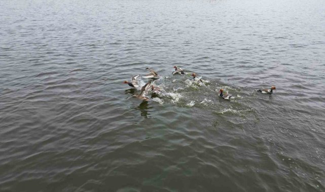 Türkiye'nin en büyük göllerinden birisi olan ve son dönemde kuraklıktan dolayı kuruma tehlikesinin baş gösterdiği Eber Gölü'nde son yaşanan yağışlarla su seviyesinde artış yaşanırken, artışla birlikte bir çok ördek ve kuş türü de göle dönmeye başladı.