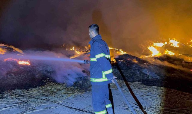 Afyonkarahisar'da Eber Gölü'nden toplanan kamışların depolandığı alanda çıkan yangında büyük çapta maddi kayıp meydana gelirken, yangın ekiplerinin uzun uğraşları sonrası yaklaşık 3 saatin sonunda söndürüldü.