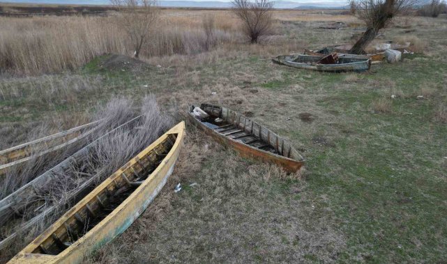 Eber Gölü'nün simgesi kayıklar suya değil, sertleşmiş toprağa hapsoldu