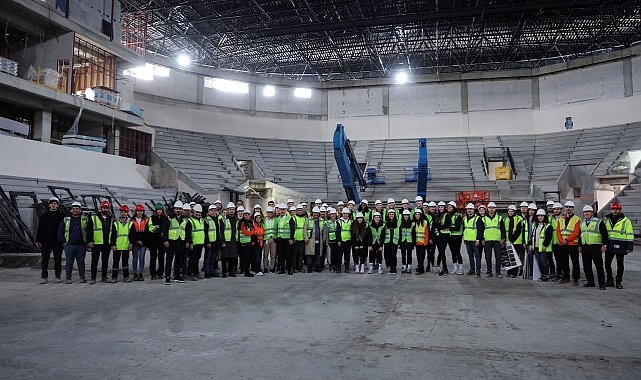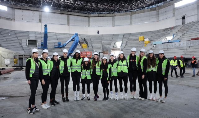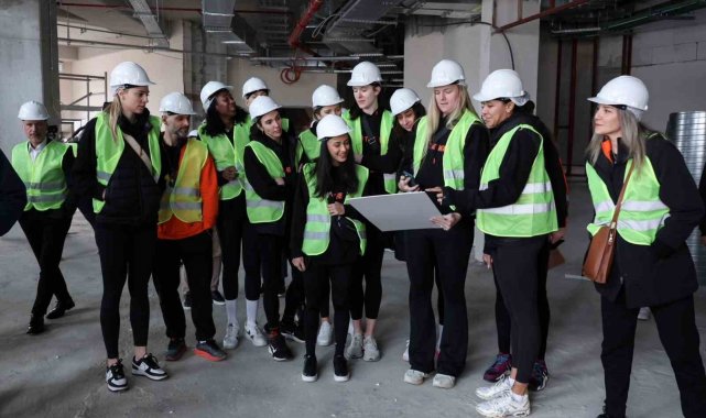 Eczacıbaşı Spor Kulübü'nün yeni spor salonunun inşaatı tüm hızıyla devam ederken, sporcular burayı ziyaret etti.