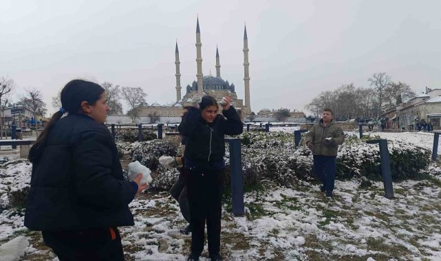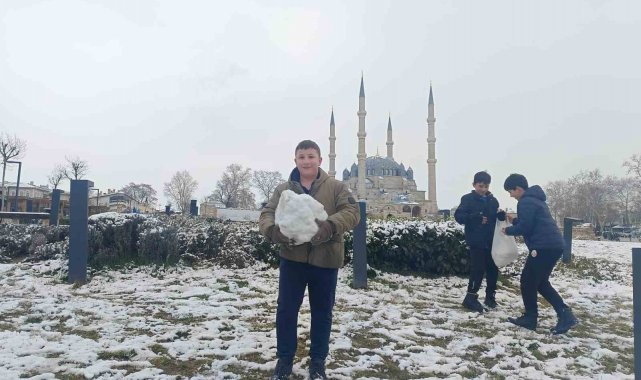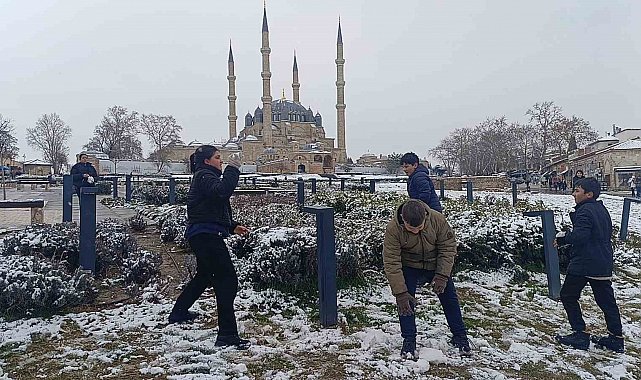 Edirne'de dün öğle saatlerinde başlayan kar yağışı gece saatlerinde etkisini artırdı. Kentin simgesi Mimar Sinan'ın ustalık eseri Selimiye Camii başta olmak üzere tarihi mekanlar ile cadde ve sokaklar beyaz örtüyle kaplandı. Yağan kar en çok da çocukları sevindirdi. Karla kaplanan kentte vatandaşlar gece saatlerinde dışarı çıkarak karın tadını çıkardı. Kimi kardan adam yaptı kimi de kartopu savaşıyla eğlendi. Soğuğa aldırış etmeyen çocuklar, okul çıkışı Selimiye Meydanı'nda kartopu oynayarak eğlendi. Ortaokul öğrencisi Kaan Arabacı, kar yağmasına çok sevindiklerini ve arkadaşlarıyla birlikte öğle arası kar topu oynayarak günün tadını çıkardıklarını söyledi. Hava sıcaklığının sıfırın altında 2 derece olarak ölçüldüğü kentte kar yağışının önümüzdeki günlerde de aralıklarla devam etmesi bekleniyor. Öte yandan vatandaşlardan buzlanmaya karşı dikkatli olmaları istendi.