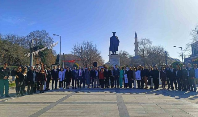 Edirne'de 14 Mart Tıp Bayramı dolayısıyla Atatürk Heykeli önünde tören düzenlendi.