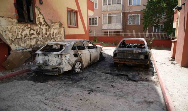 Yangında iki araç tamamen yanarak hurdaya dönerken, apartmanda maddi hasar meydana geldi. Olayla ilgili soruşturma sürüyor.