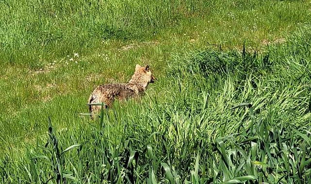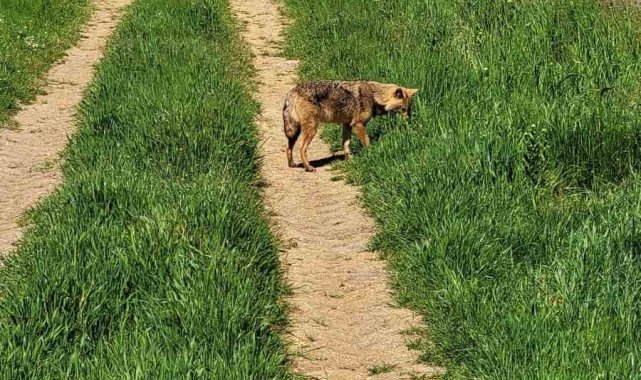 Edinilen bilgilere göre, çiftçi, traktörüyle çalıştığı sırada aniden ortaya çıkan çakalı fark etti. Bölgede nadir görülen yaban hayvanının bir süre alanda dolaştığı, traktöre ve sürücüye karşı temkinli davrandığı görüldü.