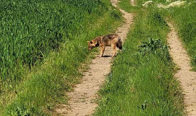 Edirne'nin İpsala ilçesine bağlı Sultanköy'de tarlasını süren bir çiftçi, gündüz saatlerinde karşısına çıkan çakal nedeniyle kısa süreli şaşkınlık ve tedirginlik yaşadı.