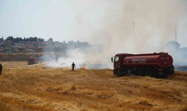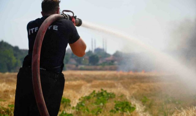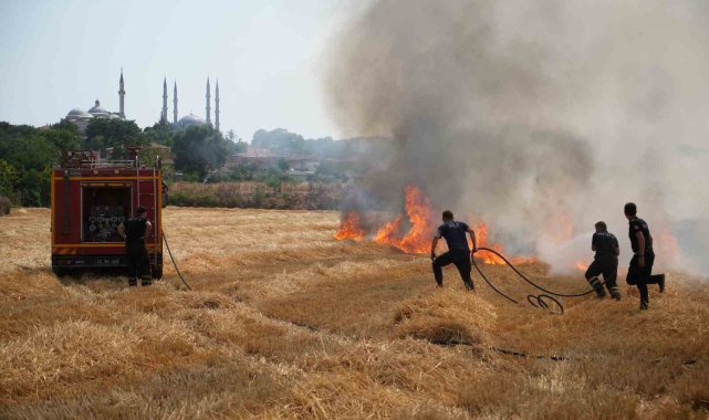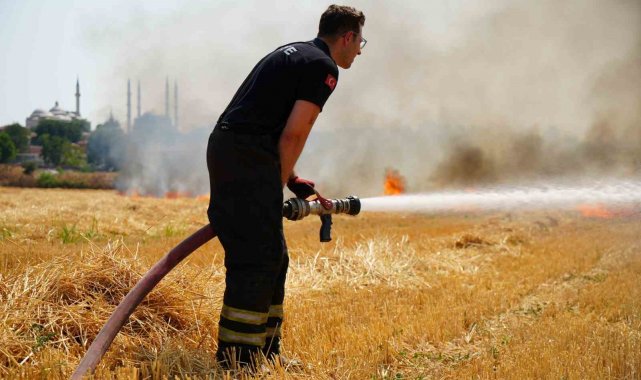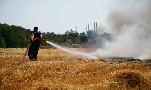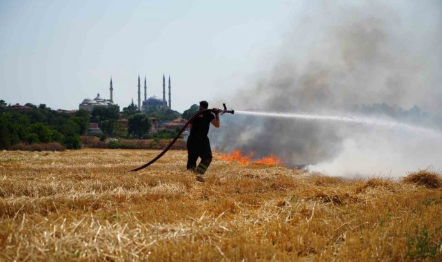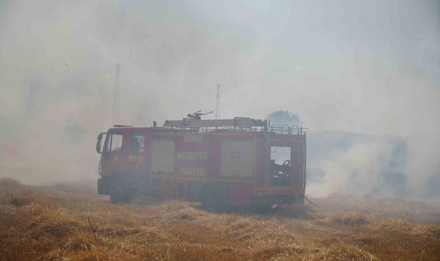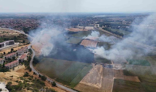 Edirne'de anız yangını yerleşim bölgesine metreler kala söndürüldü