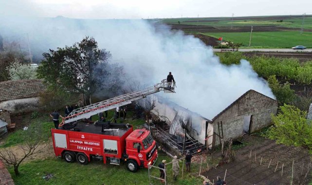 Edirne'nin Lalapaşa ilçesine bağlı Taşlısekban Köyünde arı kovanlarının bulunduğu depoda henüz belirlenemeyen nedenle yangın çıktı.