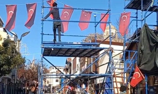 Edirne'nin en işlek noktalarından biri olan Saraçlar Caddesi'nde devam eden sokak düzenleme çalışmaları sırasında anlamlı ve duygulandıran bir olay yaşandı. Ayaklı iskelenin caddeden geçirilmesi sırasında, cadde boyunca asılı bulunan Türk bayraklarının bulunduğu alanda platforma çıkan bir işçinin, Türk bayrağını öperek kaldırması takdir topladı.