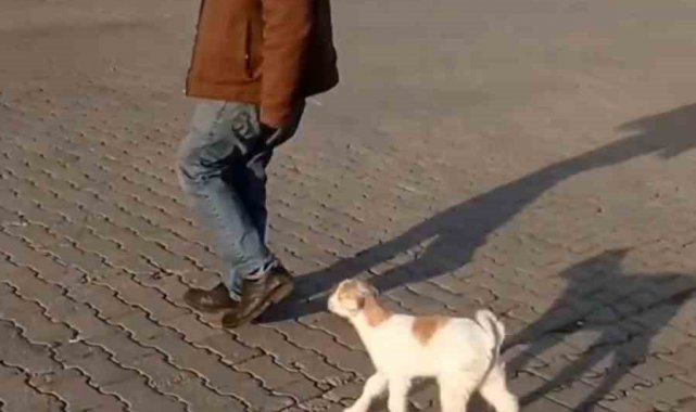 Sosyal medyada son dönemde popüler olan "keçi ile alışverişe gitme" akımına Edirne'den de eğlenceli bir katkı geldi.