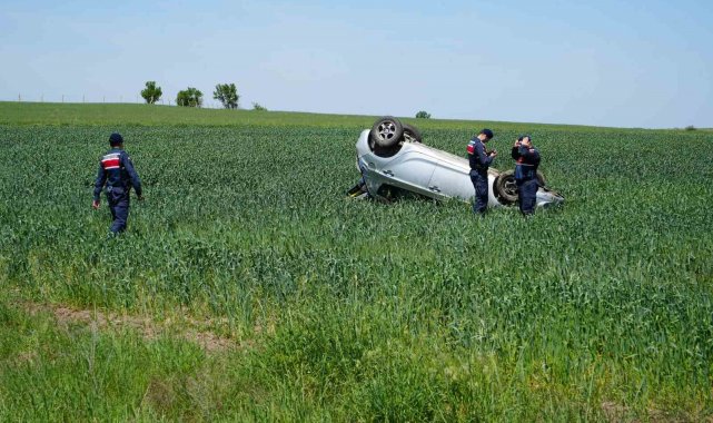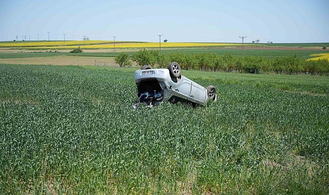Edirne'de Havsa kara yolunda meydana gelen trafik kazasında devrilen otomobilde bulunan sürücü ve eşi yaralandı.