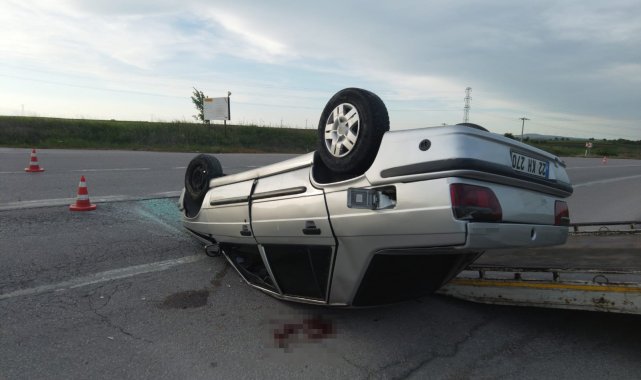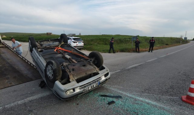 Edirne'de devrilen otomobilin sürücüsü yaralandı