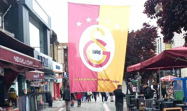 Edirne'de erken kutlama: Dev Galatasaray bayrağı Saraçlar Caddesi'ne asıldı
