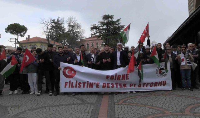 Edirne'de cuma namazı çıkışı Eski Cami önünde bir araya gelen Filistin'e Destek Platformu üyeleri ve vatandaşlar, İsrail'in Filistinli esirleri hedef alan "idam yasası" ile Gazze'deki soykırımı protesto etti. Grup adına basın açıklamasını okuyan Eyüp Açıkgöz, Filistin'de yaşanan insani dramın uluslararası kamuoyunun gündeminde tutulması gerektiğini vurgulayarak, sivillere yönelik saldırıların kabul edilemez olduğunu ifade etti. Gözü dönmüş, azgın bir grup siyonist tarafından planlanmış ve uygulamaya konulmuş akıl almaz bir dönemin yaşandığını söyleyen Açıkgöz, tüm değerlerin yok sayıldığı, çiğnendiği bir zaman diliminden geçildiğini, insanlığın adeta azgın ve sapkın bir ideoloji tarafından rehin alındığını belirtti. Filistin topraklarında sivillere yönelik saldırıların yanı sıra idam uygulamalarının da kabul edilemez olduğunu aktaran Açıkgöz, uluslararası kamuoyuna harekete geçme çağrısında bulundu. 165 İranlı öğrencinin siyonist rejim tarafından okul sıralarında katledilmesi ve bu katliamın küresel vicdanda yeteri kadar yer bulmamasının sarsıntısını yaşadıklarını belirten Açıkgöz, bugün burada olduğu gibi dünyanın dört bir yanından yükselen itiraz seslerinin bir nebze olsun umutlarını yeşerttiğini dile getirdi. Mescid-i Aksa'nın ibadete kapatılmasının İslam'ın ve Müslümanların izzetine yapılmış bir saldırı olduğuna dikkat çeken Açıkgöz, ortaya konulan bu cürümlere karşı mücadelenin kıyamete kadar devam edeceğini belirtti. Açıkgöz, meşrep, mezhep, siyasi görüş, din ve dil ayrımı yapmaksızın küresel bir direniş hareketi başlatmakta ve siyonist rejimle mücadele etmekte kararlı olduklarını söyledi.