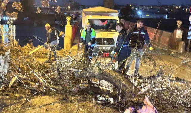 Edirne'de akşam saatlerinde etkili olan şiddetli sağanak ve fırtınada çok sayıda ağaç kökünden sökülerek devrildi.