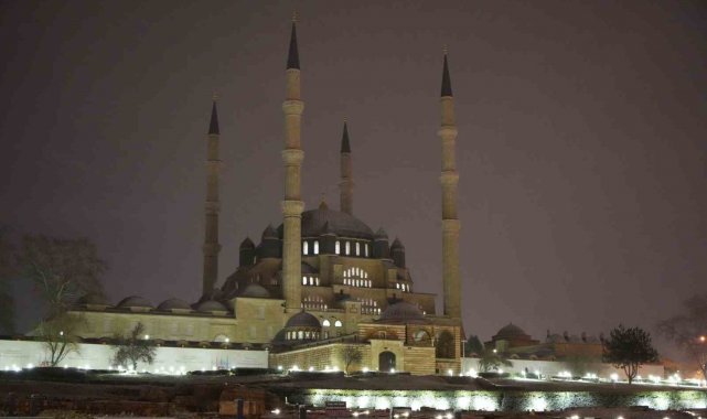 Hava sıcaklığının sıfırın altına düştüğü kent merkezinde kar yağışıyla birlikte özellikle tarihi alanlar beyaza büründü. UNESCO Dünya Kültür Mirası Listesi'nde yer alan Selimiye Camii başta olmak üzere birçok tarihi yapı beyaz örtüyle kaplandı.