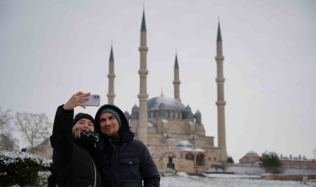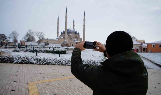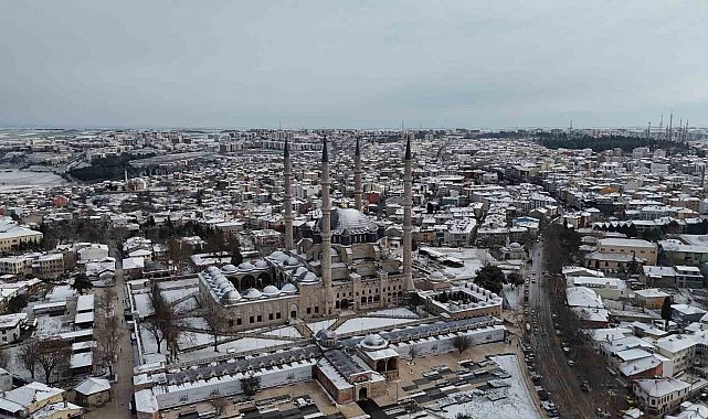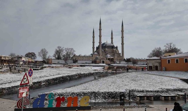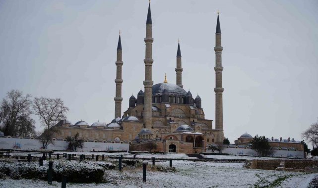 UNESCO Dünya Kültür Mirası Listesi'nde yer alan tarihi Selimiye Camii, kar yağışıyla birlikte kartpostallık görüntülere sahne oldu. Caminin görkemli kubbesi ve minareleri beyaz örtüyle bütünleşirken, çevredeki park ve bahçeler de karın etkisiyle seyirlik manzaralar sundu.
