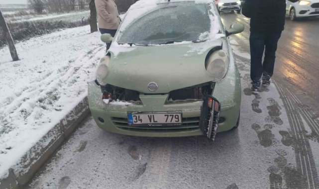 Edirne'de kar yağışı ve buzlanma sebebiyle 9 aracın karıştığı zincirleme kazada trafik durma noktasına geldi.