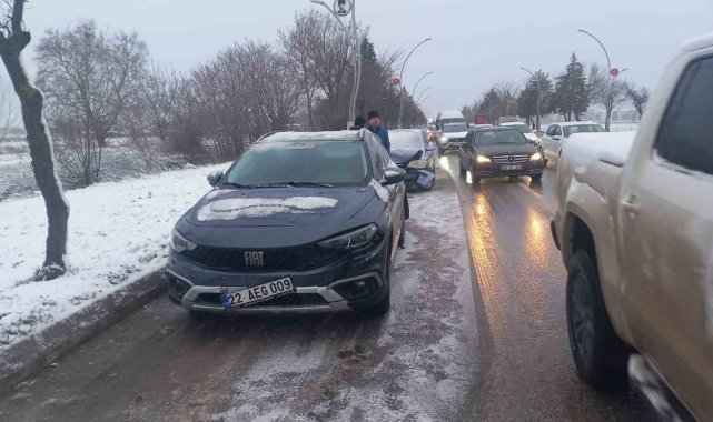 Edirne'de akşam saatlerinden itibaren etkili olan kar yağışı, kentte hayatı olumsuz etkiledi. Haftanın ilk günü işe ve okula gitmek isteyen vatandaşlar yollarda uzun süre beklemek zorunda kalırken, Trakya Üniversitesi Tıp Fakültesi mevkiinde 9 aracın karıştığı zincirleme trafik kazası meydana geldi.