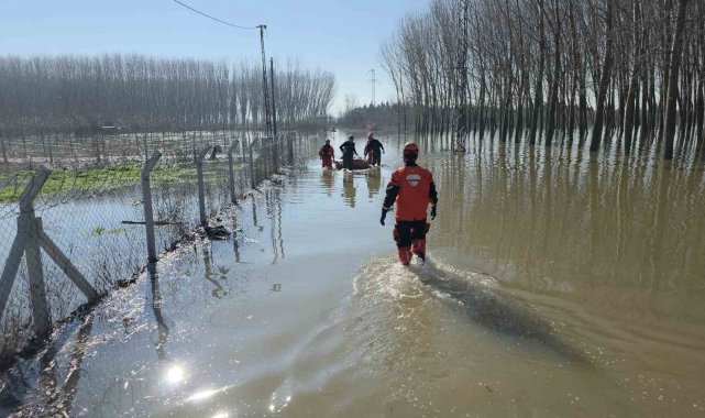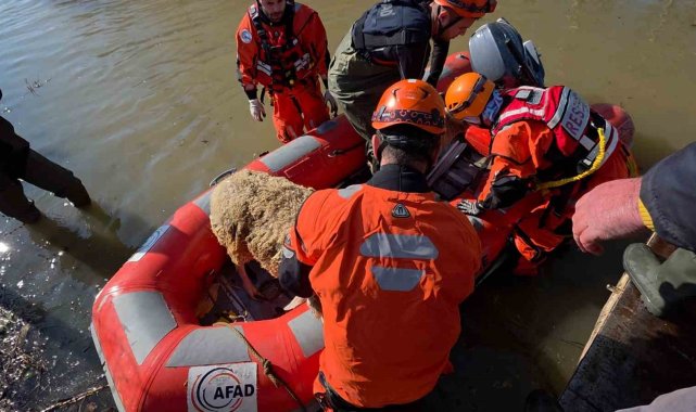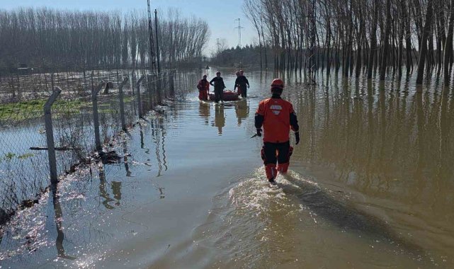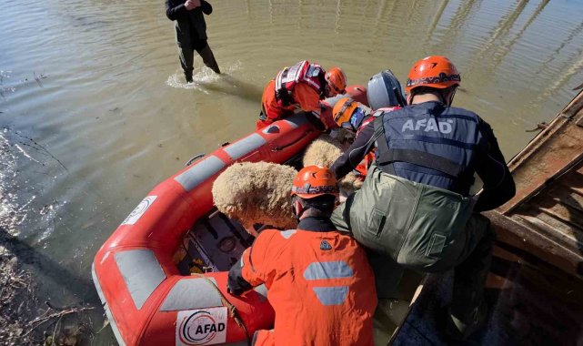 Edirne'de yaşanan su taşkınları sonrası yükselen sular, merkeze bağlı Bosna köyünde hayvancılıkla uğraşan vatandaşları da etkiledi. Taşkın nedeniyle risk altında kalan koyunlar için AFAD ekipleri harekete geçti. Bölgeye sevk edilen ekipler, botlar yardımıyla sürüyü bulundukları noktadan alarak güvenli alana tahliye etti.
