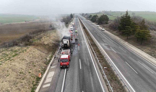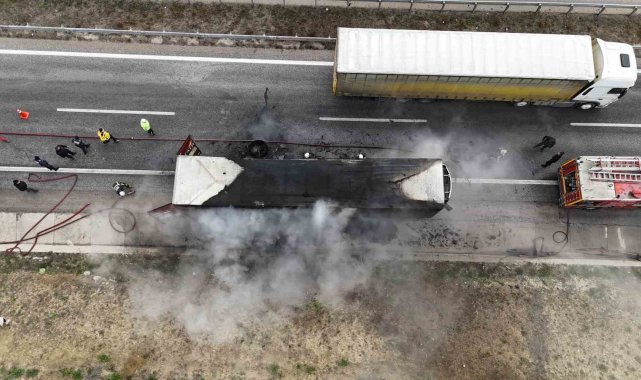 Edinilen bilgiye göre, Gürcistan uyruklu Archıl Gobadze idaresindeki UF001IT Gürcistan plakalı tırın dorsesi alev almaya başladı. Sürücü Gobadze, hemen çekici tırı dorseden ayırarak alevler sıçramadan uzaklaştırdı. Yol kenarına tırını çeken sürücü durumu itfaiye ekiplerine bildirdi.