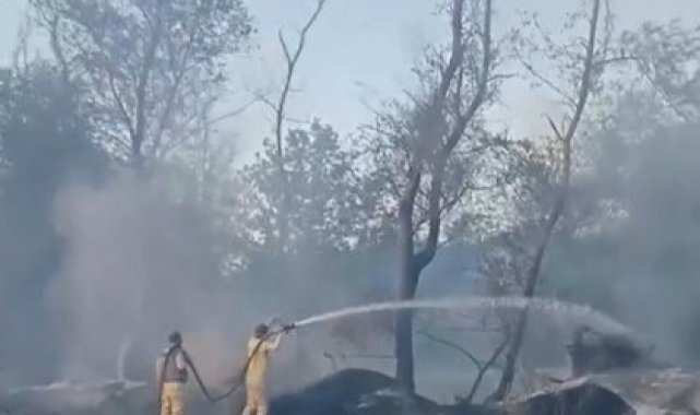 Edirne'de Meriç Nehri kenarındaki adacığa atılan çöplerden yangın çıktı
