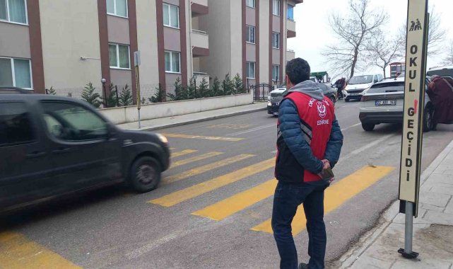 Edirne'de "okul polisi" öğrencilere güven verirken yayalara yol vermeyen araçları da tespit etti