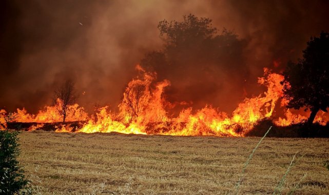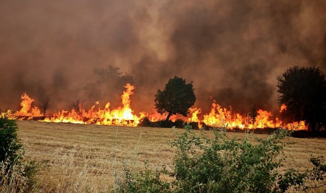 Edirne'de orman ve anız yangınında alevler metrelerce yükseldi