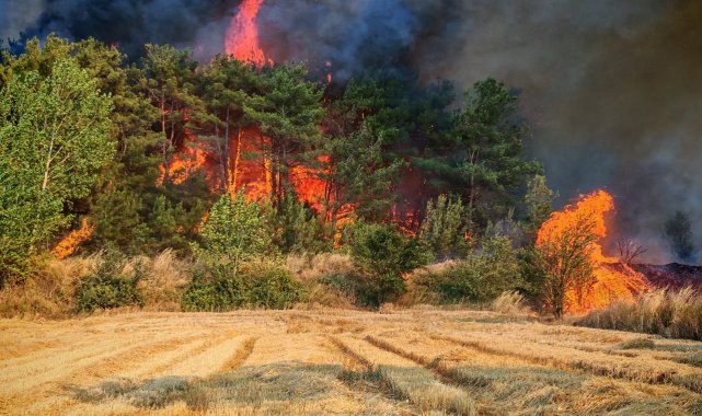 Edirne'nin Keşan ilçesinde çıkan orman ve anız yangınında alevler metrelerce yükseldi. Yangına havadan ve karadan yoğun müdahale sürüyor.