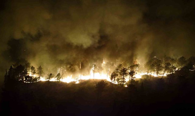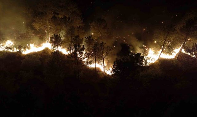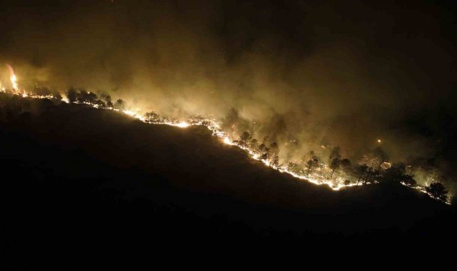 Rüzgarın şiddetini artırdığı bölgede yangının hızı da artarak devam ediyor. Gecenin karanlığını aydınlatan alevlerin ürkütücü görüntüsü, kilometrelerce uzaktan dahi görülebiliyor.