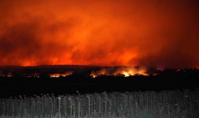 Edirne'de alevlerin devasa boyuta ulaştığı orman yangınında, yüzlerce vatandaş tahliye edildi.