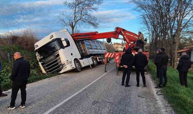 Demirhamlı köyünde meydana gelen ikinci kazada ise sürücüsünün direksiyon hâkimiyetini kaybettiği tır, yoldan çıkarak sulama kanalına girdi. Kontrolden çıkan tonlarca ağırlıktaki tır, ancak sulama kanalında durabildi. Bölgeye sevk edilen kurtarıcı ekipler, yaklaşık 2 saat süren çalışmanın ardından tırı bulunduğu yerden çıkardı.