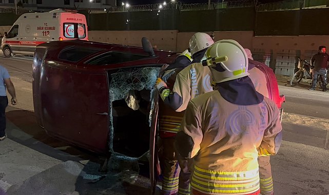 Edirne'de kontrolden çıkarak refüje çarpan otomobilin yan yatması sonucu araçta mahsur kalan 2 kişi, itfaiye ekiplerinin müdahalesiyle kurtarıldı.