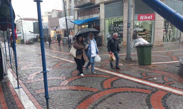 Edirne'de sabah saatlerinde çiseleyen hava, öğle saatlerine doğru etkisini artırarak sağanağa dönüştü. Yağış nedeniyle bazı cadde ve sokaklarda yer yer su birikintileri oluştu.