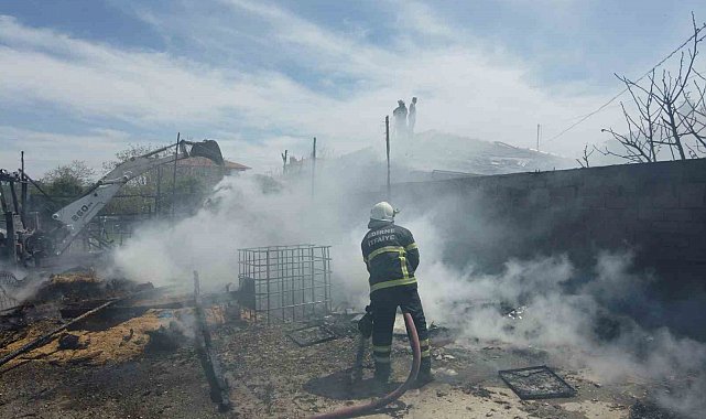 Yangında saman balyaları, tarım aletleri ve ev yanarak zarar gördü. Jandarma yangınla ilgili inceleme başlattı.