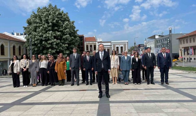 Sosyal Güvenlik Kurumu (SGK) Edirne İl Müdürlüğü tarafından Sosyal Güvenlik Haftası dolayısıyla Atatürk Heykeli önünde çelenk töreni düzenlendi.
