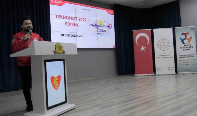 Edirne'de İl Millî Eğitim Müdürlüğü koordinesinde öğrencilere TEKNOFEST'in sunduğu imkân ile fırsatları tanıtmak amacıyla tanıtım programı düzenlendi.