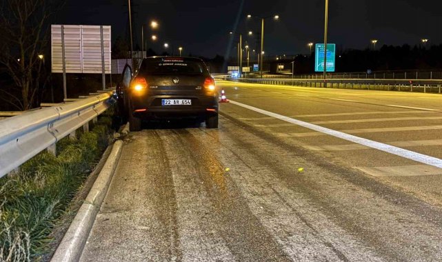 Edinilen bilgiye göre, İstanbul'dan Edirne istikametine ters yönde son sürat ilerleyen A.T.Ç. idaresindeki 22 AR 654 plakalı otomobil, Edirne girişinde tır kantarı mevkiinde kontrolden çıkarak bariyerlere çarptı. Kazada sürücü A.T.Ç. ile araçta bulunan yolcu yaralanırken, yol kenarında bulunan Karayollarında görevli iki personel ile karşı yönden gelen sürücüler kıl payı kurtuldu. İhbar üzerine olay yerine jandarma ekipleri sevk edildi. Ekipler, yol üzerinde güvenlik önlemi alarak, trafiği kontrollü şekilde sağladı. Yaralılar sağlık ekiplerince hastaneye kaldırılırken, yapılan kontrolde sürücünün alkollü olduğu belirlendi.
