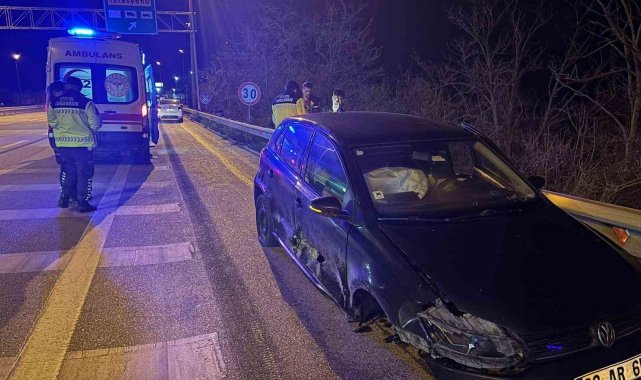 Edirne'de otoyolda ters yöne giren alkollü sürücü, faciaya davetiye çıkardı. Ters yönde ilerleyen otomobilin bariyerlere çarptığı kazada 2 kişi yaralanırken, kaza anı kameralara yansıdı.