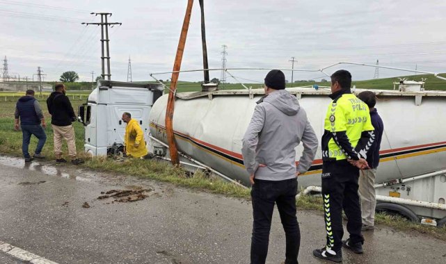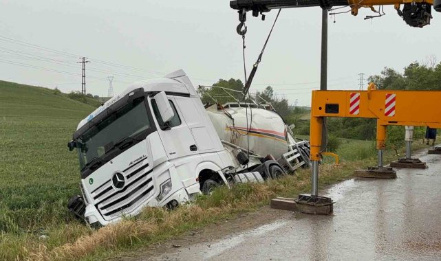 Edinilen bilgiye göre, A.E. idaresindeki 22 ACH 045 plakalı treyler silobas tır aracı sürücünün direksiyon hakimiyetini kaybetmesi sonucu yoldan çıkarak tarlaya devrildi. Sürücü A.E., meydana gelen kazada yaralandı.