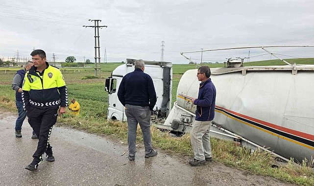 Edirne'de seyir halindeki treyler silobas tır sürücüsünün direksiyon kontrolünü kaybetmesi sonucu tarlaya devrildi. Meydana gelen kazada sürücü yaralandı.